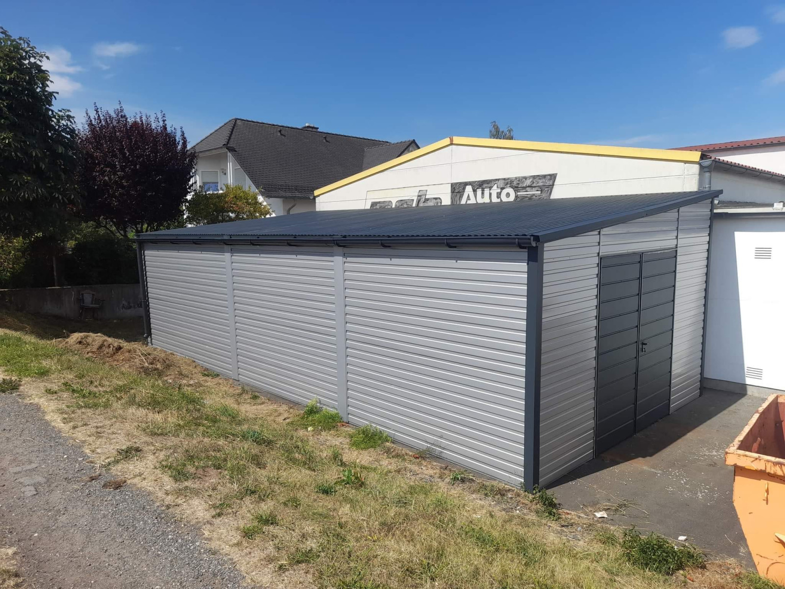 Predstavujeme vám plechovú garáž s rozmermi 5×8 m, ktorá kombinuje moderný dizajn, kvalitnú oceľovú konštrukciu a atraktívnu cenu.