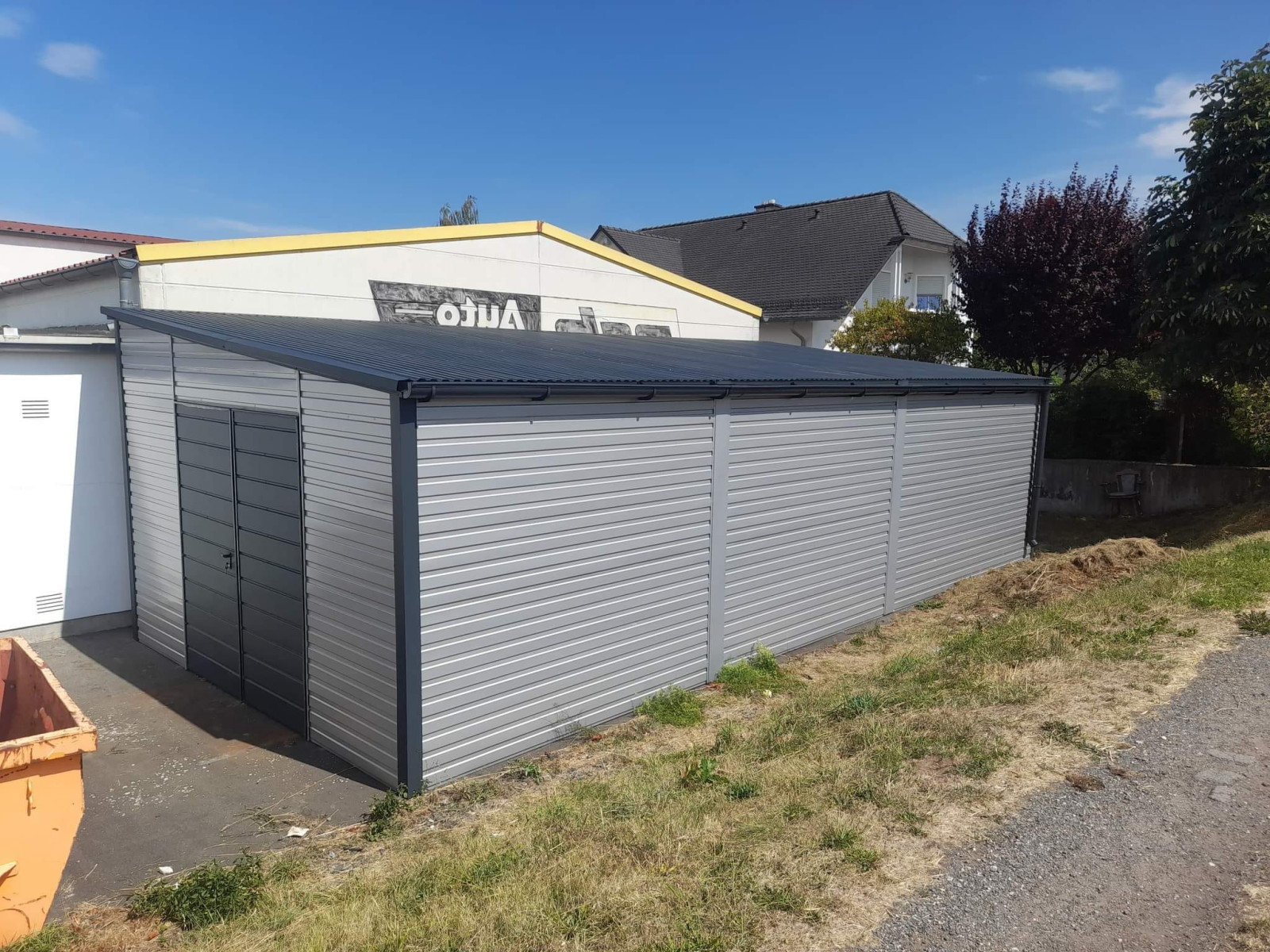 Predstavujeme vám plechovú garáž s rozmermi 5×8 m, ktorá kombinuje moderný dizajn, kvalitnú oceľovú konštrukciu a atraktívnu cenu.
