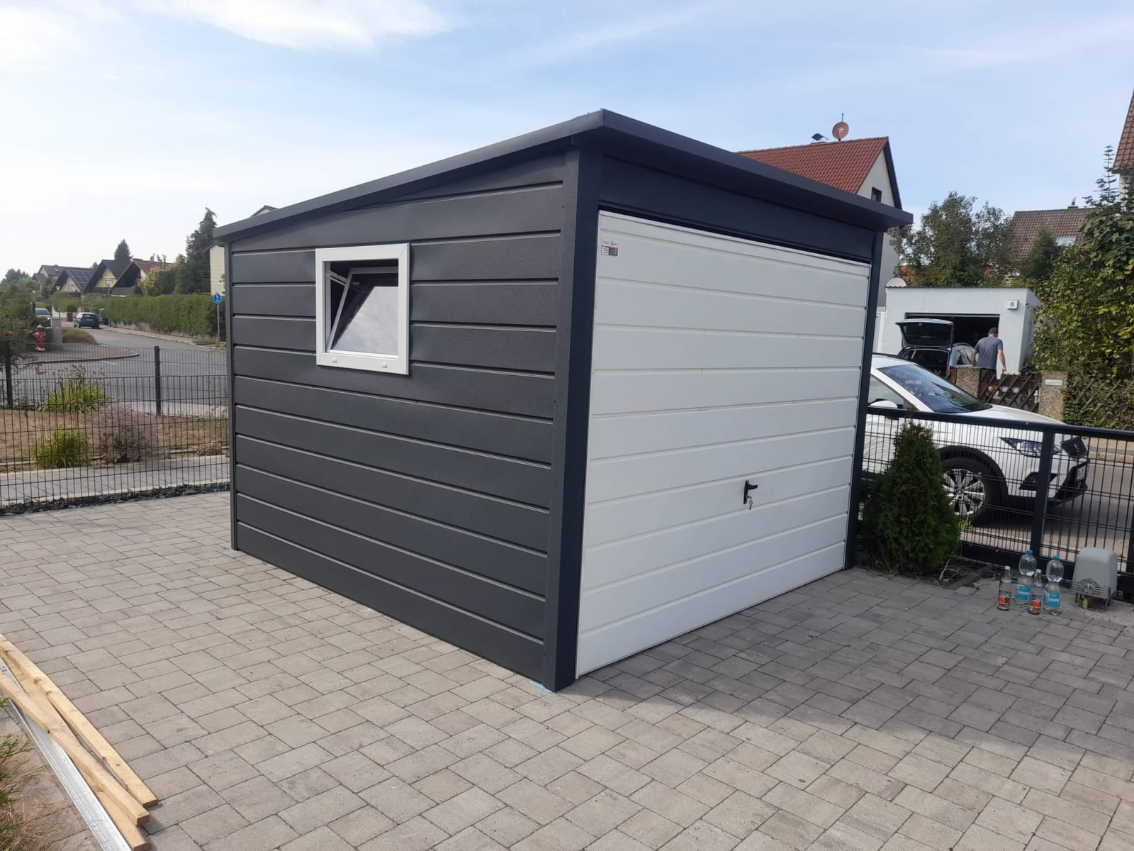 je praktický a odolný plechový sklad na náradie, bicykle, techniku alebo záhradné príslušenstvo. Domček je vyrobený z vodorovného trapézového plechu, ktorý je nitovaný na pevnú kovovú konštrukciu z uzavretého profilu. Výsledkom je stabilná stavba s dlhou životnosťou, vhodná do každej záhrady.